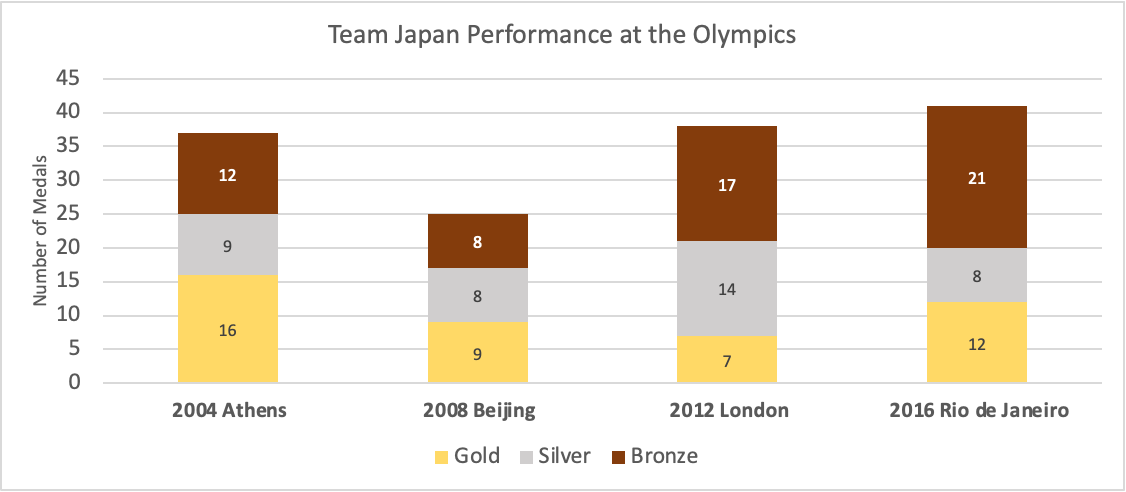 Japan as a host nation has great ambitions. The performance of Japanese athletes in the last 3 editions of the Olympic Games has shown an increase in the number of medals possibly thanks to increased investment in Olympic Sports and in infrastructure which could reach its peak at the ‘Home’ Olympics. My Japanese colleagues tell me the objective is to finish in the top 3.